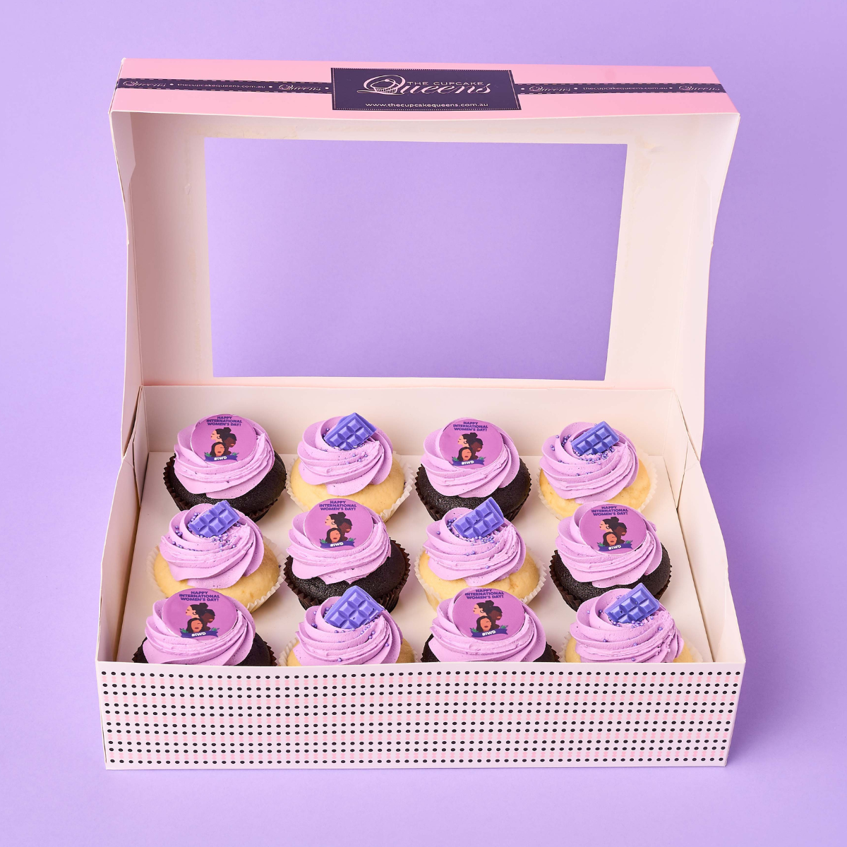 Our International Women's Day cupcakes come with recognisable IWD branding with logo toppers and are available in crowd pleasing flavours across chocolate and vanilla. Food brings teams together and we're sure these beautifully presented cupcakes and themed treats will make your International Women's Day event one that your team will remember.